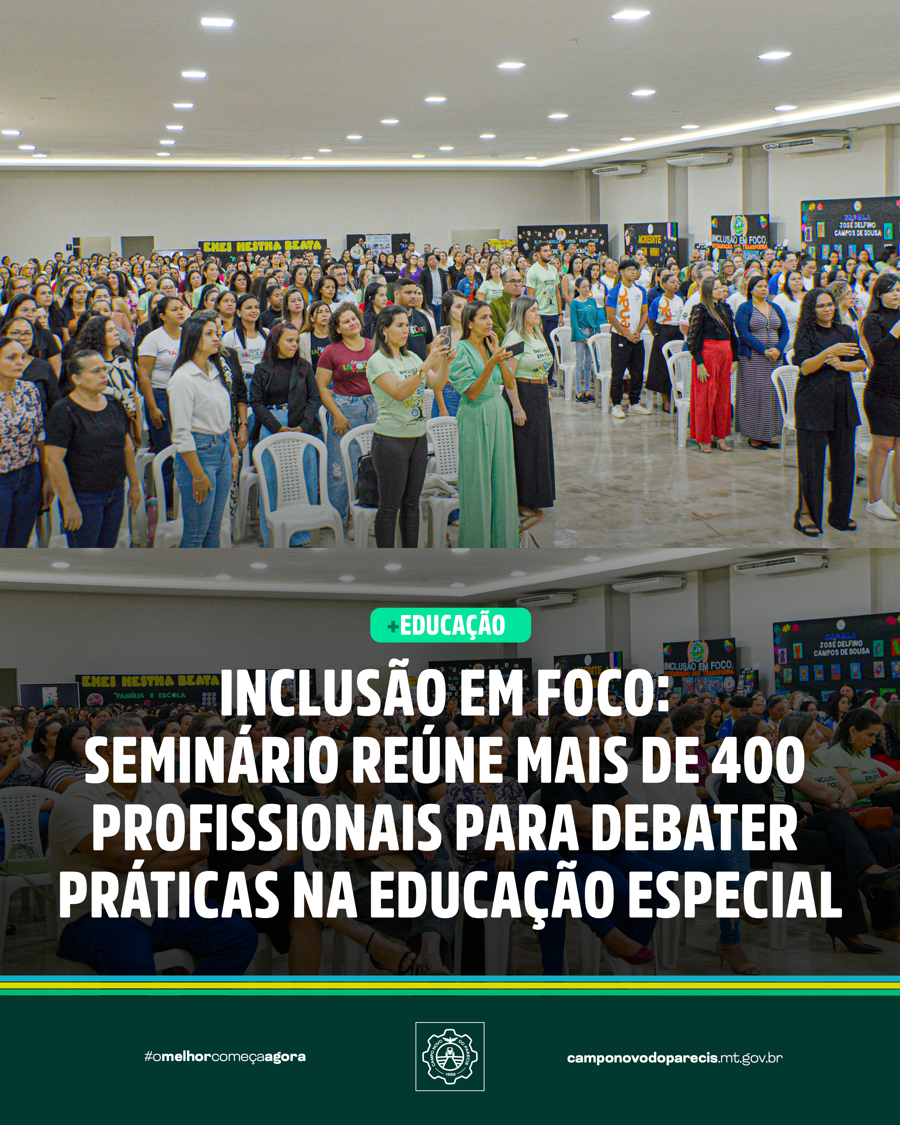 Com o tema “Inclusão em Foco”, o seminário reúne profissionais especializados, gestores, professores e comunidade escolar para debater novos caminhos e possibilidades para a educação inclusiva, fortalecendo o papel da família, da escola e das terapias como pilares essenciais para o sucesso dos estudantes.