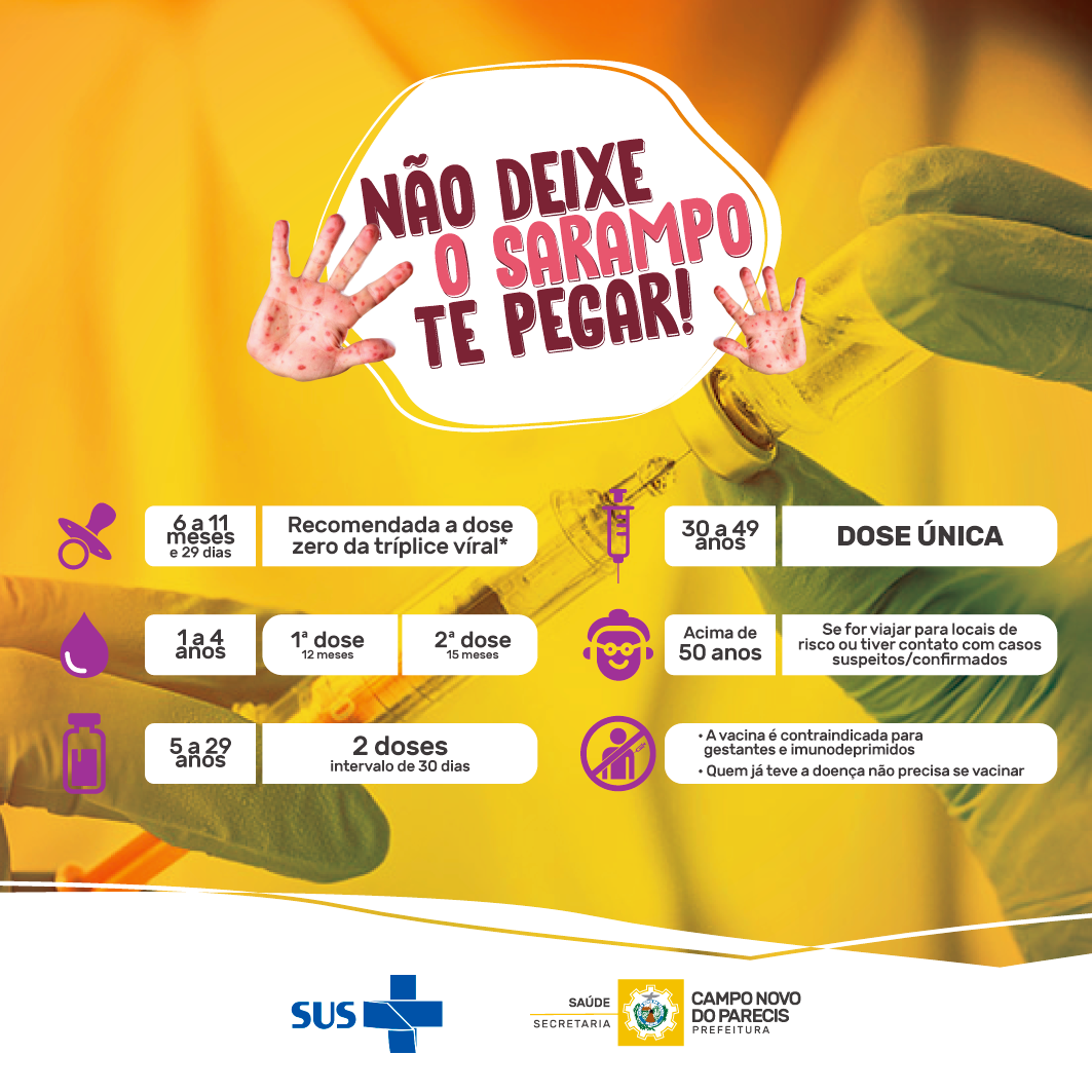 A Secretaria de Saúde de Campo Novo do Parecis comunica toda comunidade que agora está havendo a intensificação da vacina contra Sarampo