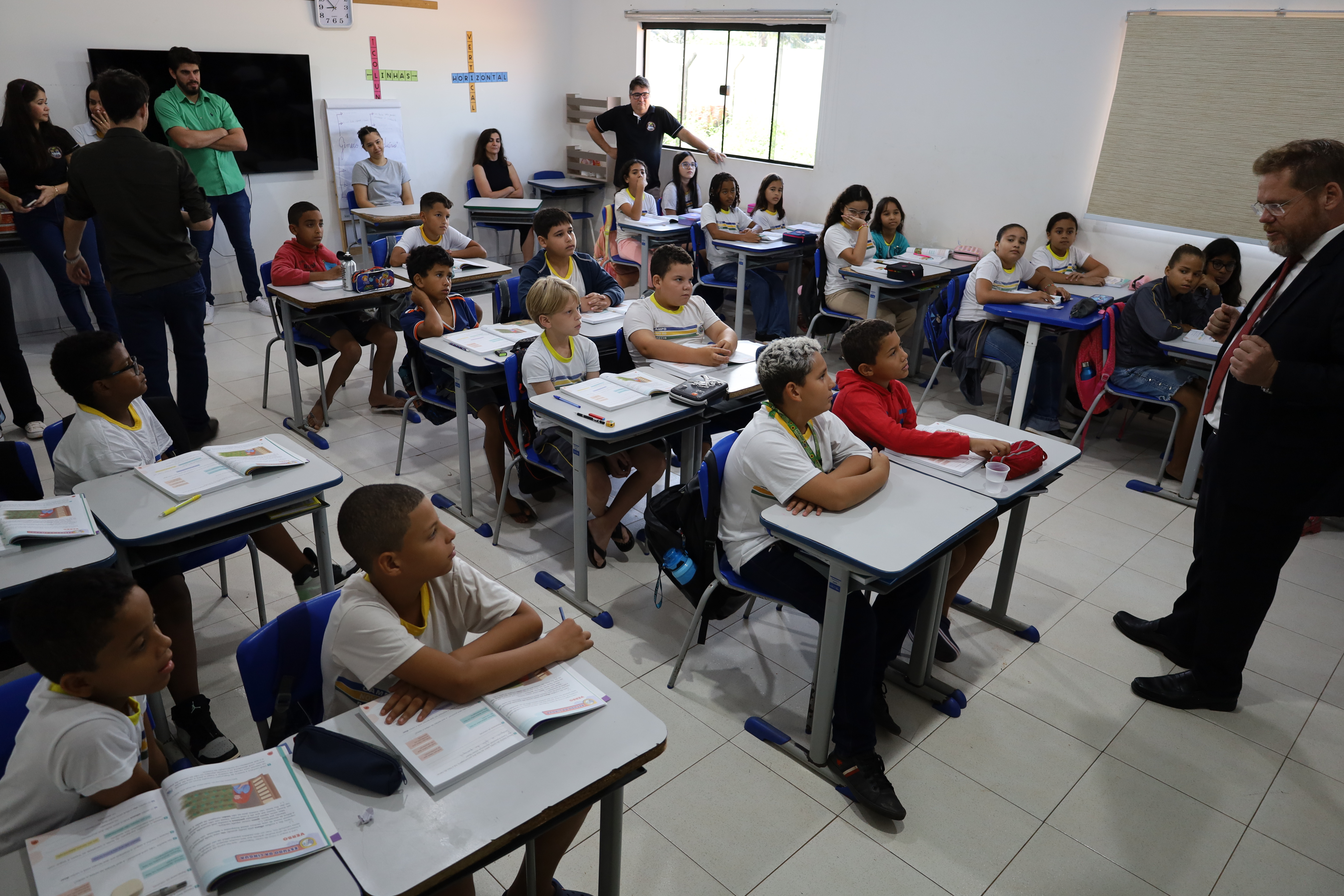 Durante visita nas salas de aula na manhã desta segunda-feira o promotor de justiça Luiz Augusto destacou a importância da presença dos alunos nas aulas, bom comportamento e respeito aos professores e aos colegas durante á permanência na escola, isso ajudará o mesmo aumentando as chances em se destacar para se tornar um finalista a ganhar um notebook no final do ano letivo.
