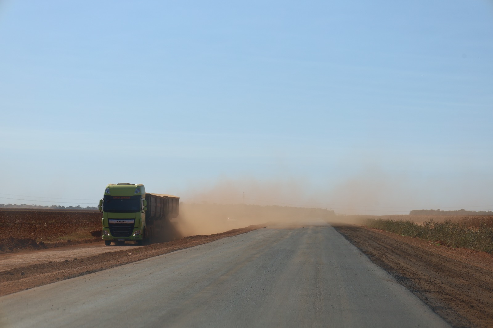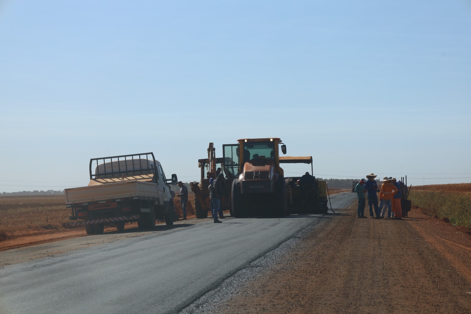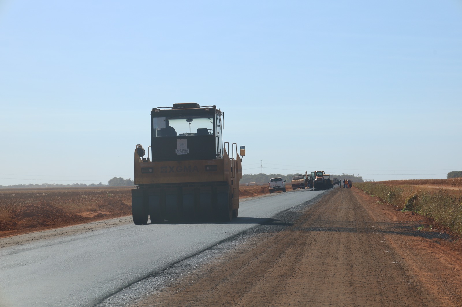 As obras de pavimentação asfáltica na Linha Santa Maria, em Campo Novo do Parecis, seguem em ritmo acelerado e a comunidade já pode comemorar. Nos próximos dias, 10 novos km da estrada estarão prontos para uso. Essa conquista é um marco histórico para os moradores e produtores da região do Chapadão, pois a Linha se tornará a primeira estrada rural do município a receber pavimentação asfáltica.