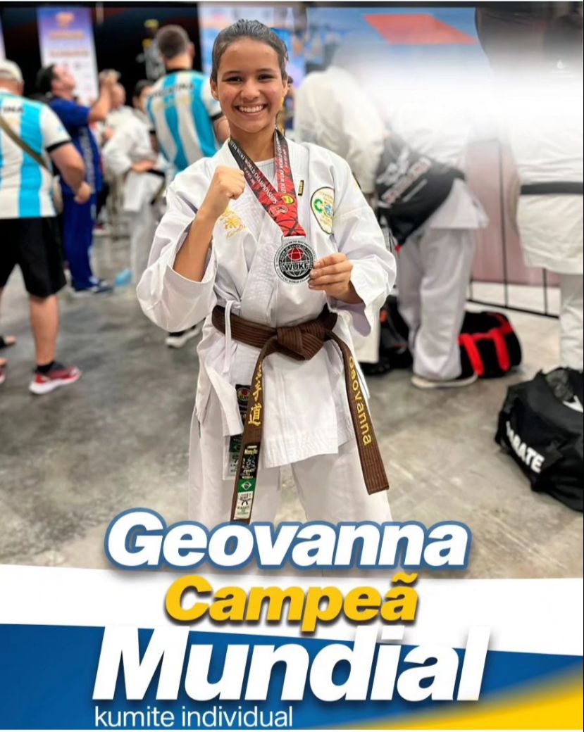 Geovanna, de apenas 14 anos, enfrentou adversárias de diversos países e mostrou todo seu talento e dedicação ao esporte. Sua trajetória até o título mundial foi marcada por treinos intensos, sacrifícios e uma determinação inabalável. Desde cedo, ela demonstrou um talento excepcional para o karatê, sendo incentivada por sua família e treinadores a seguir em frente e nunca desistir de seus sonhos.