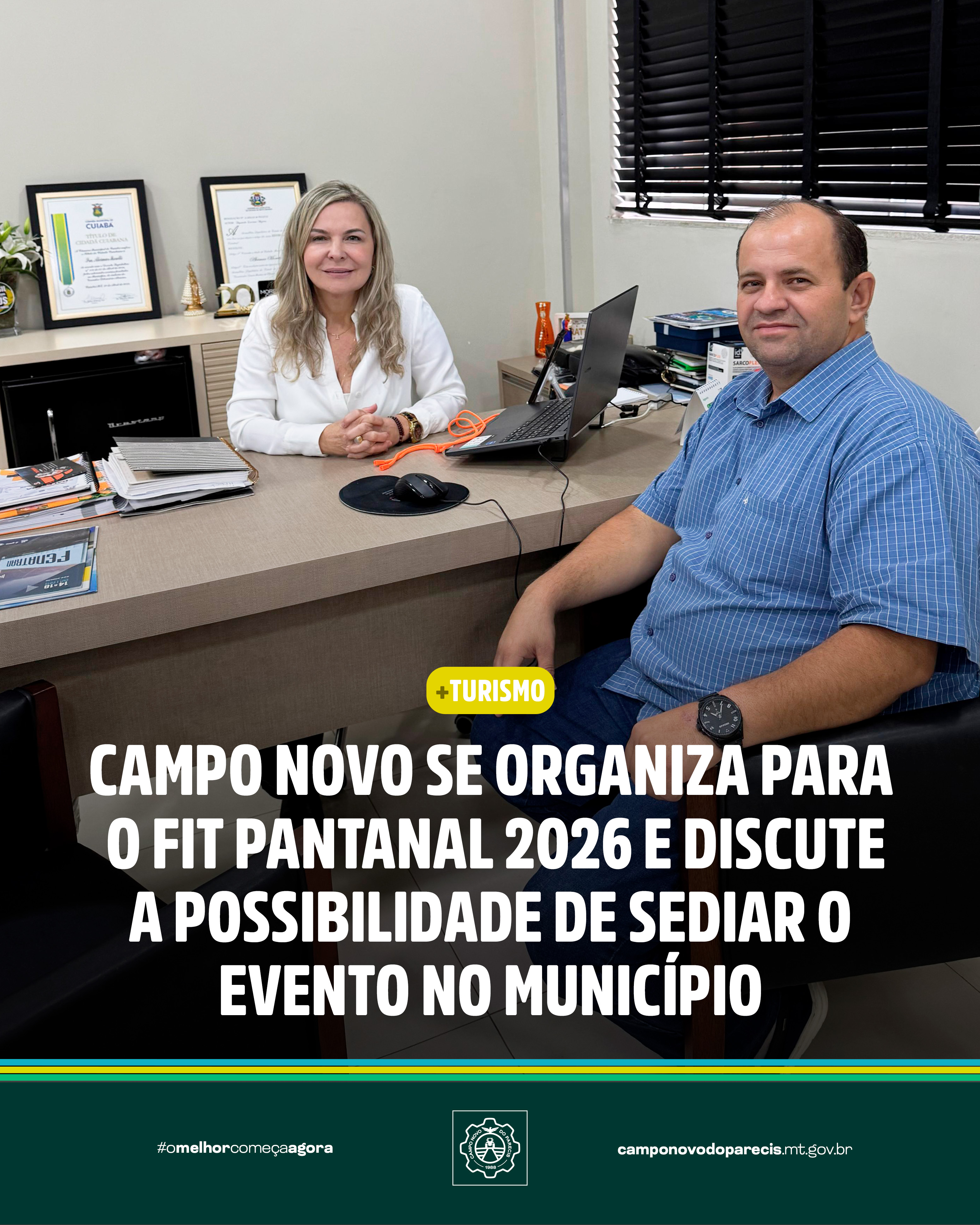 O coordenador de Turismo de Campo Novo do Parecis Claudio Roberto (Maestro) conduziu uma reunião com Alcimar Moreti para tratar da participação do município na FIT Pantanal 2026 e da possibilidade de que o evento seja sediado em Campo Novo.
