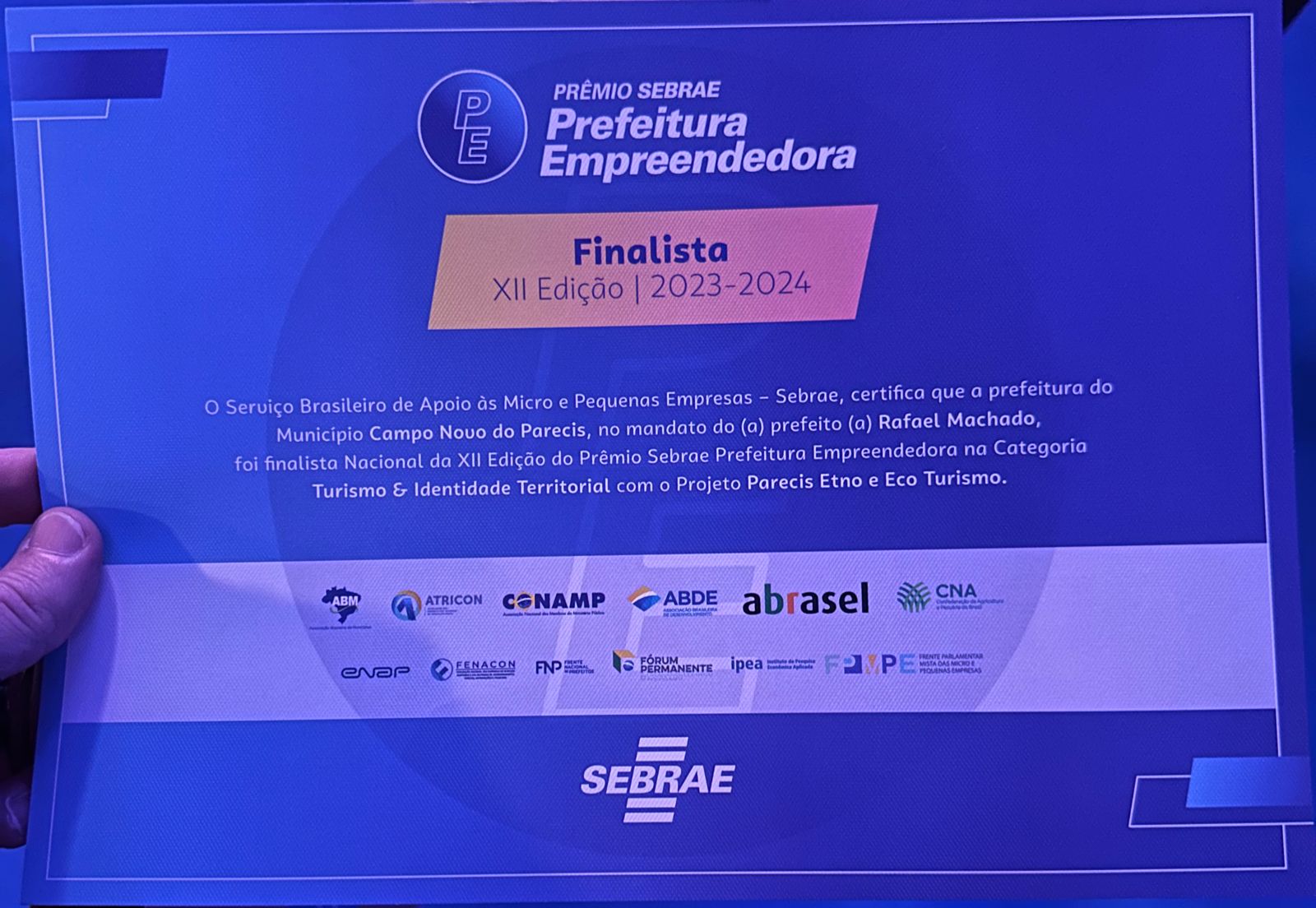 Hoje, 11 de junho às 19h, acontece em Brasília a Cerimônia de Premiação do XII Prêmio Sebrae Prefeitura Empreendedora, e a cidade de Campo Novo do Parecis se encontra em clima de grande expectativa.