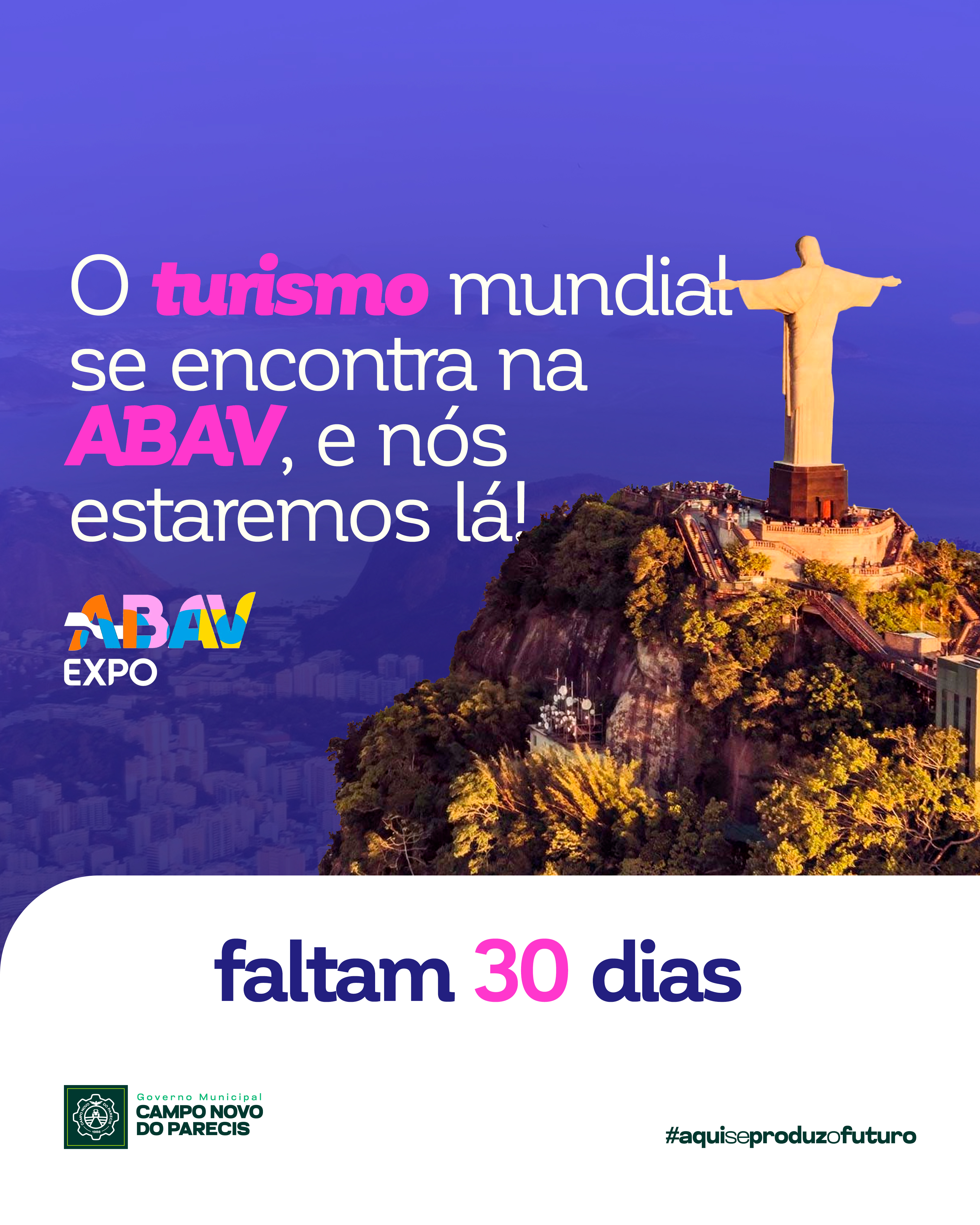 Faltam apenas 30 dias para a ABAV Expo 2025, o maior encontro de turismo do Brasil e um dos mais importantes do mundo, e Campo Novo do Parecis já se prepara para estar presente e mostrar todo o potencial do município.