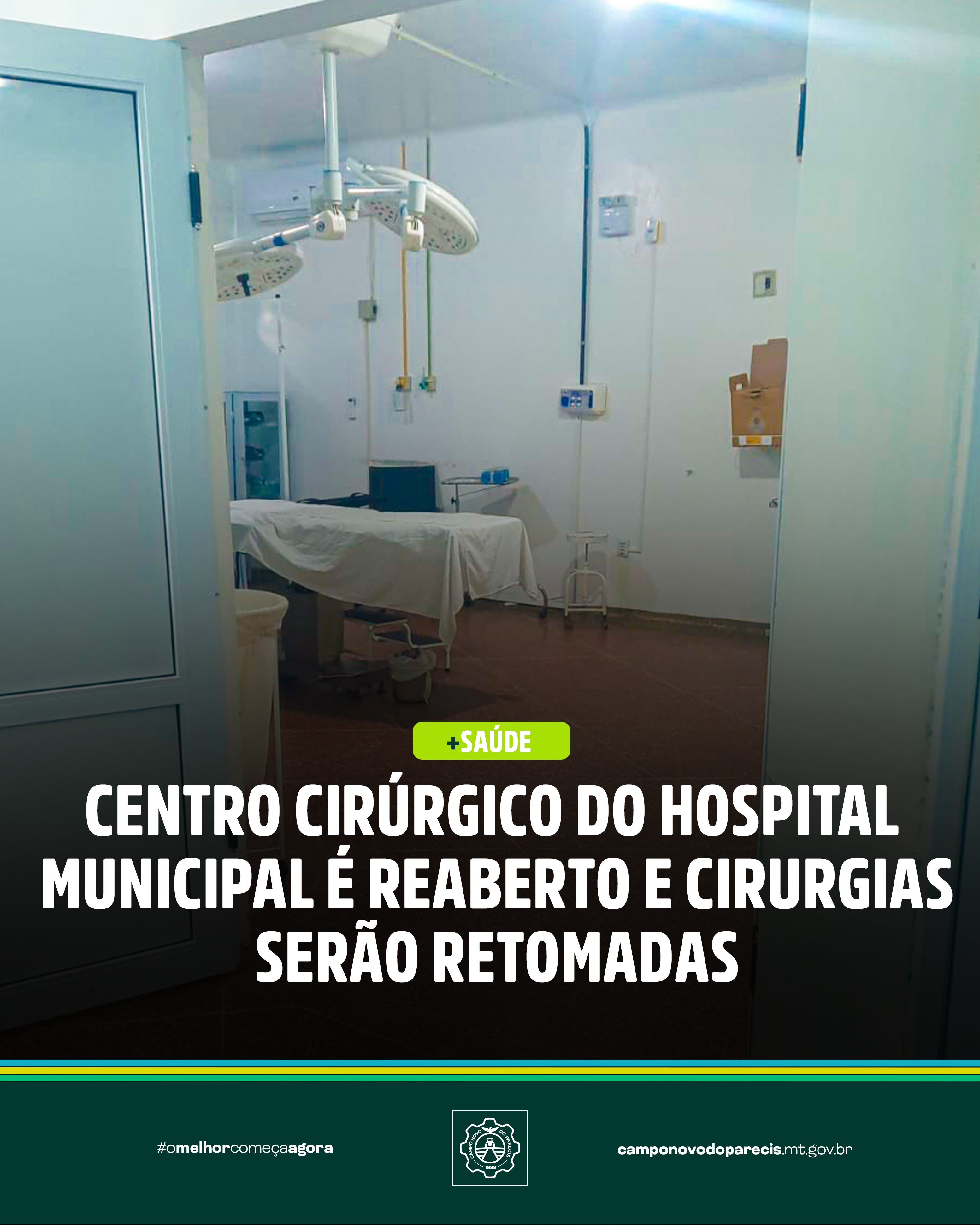 O Centro Cirúrgico do Hospital Municipal está oficialmente reaberto, marcando um importante avanço para a saúde do município. Com a conclusão dos ajustes necessários e a reorganização dos serviços, as cirurgias eletivas e procedimentos cirúrgicos voltarão a ser realizadas, garantindo mais agilidade e qualidade no atendimento à população.