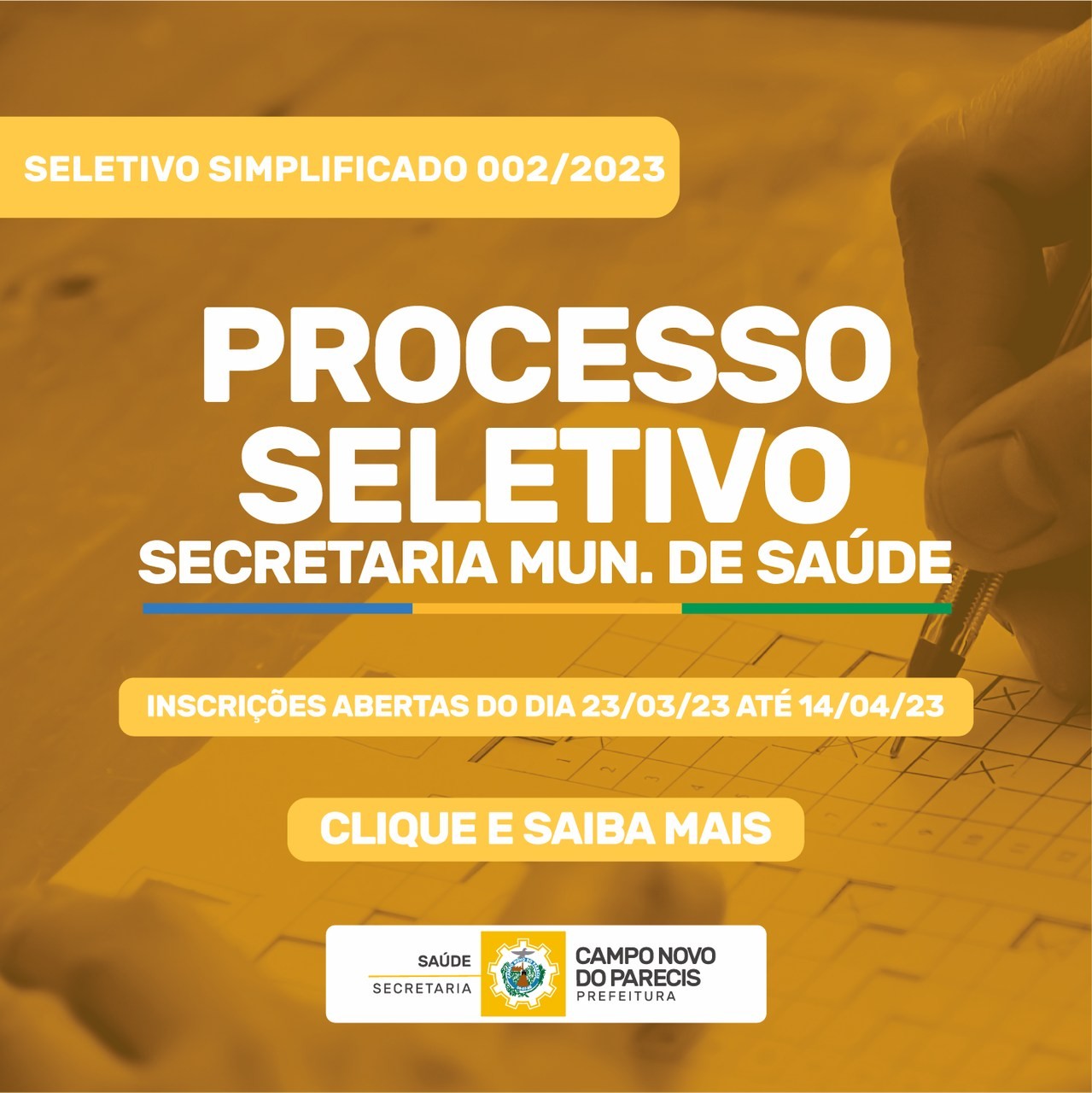 A Secretaria Municipal de Saúde de Campo Novo do Parecis – MT, torna público o Processo Seletivo 002/2023 para contratações temporárias para Profissionais na área da Saúde, por análises de títulos.