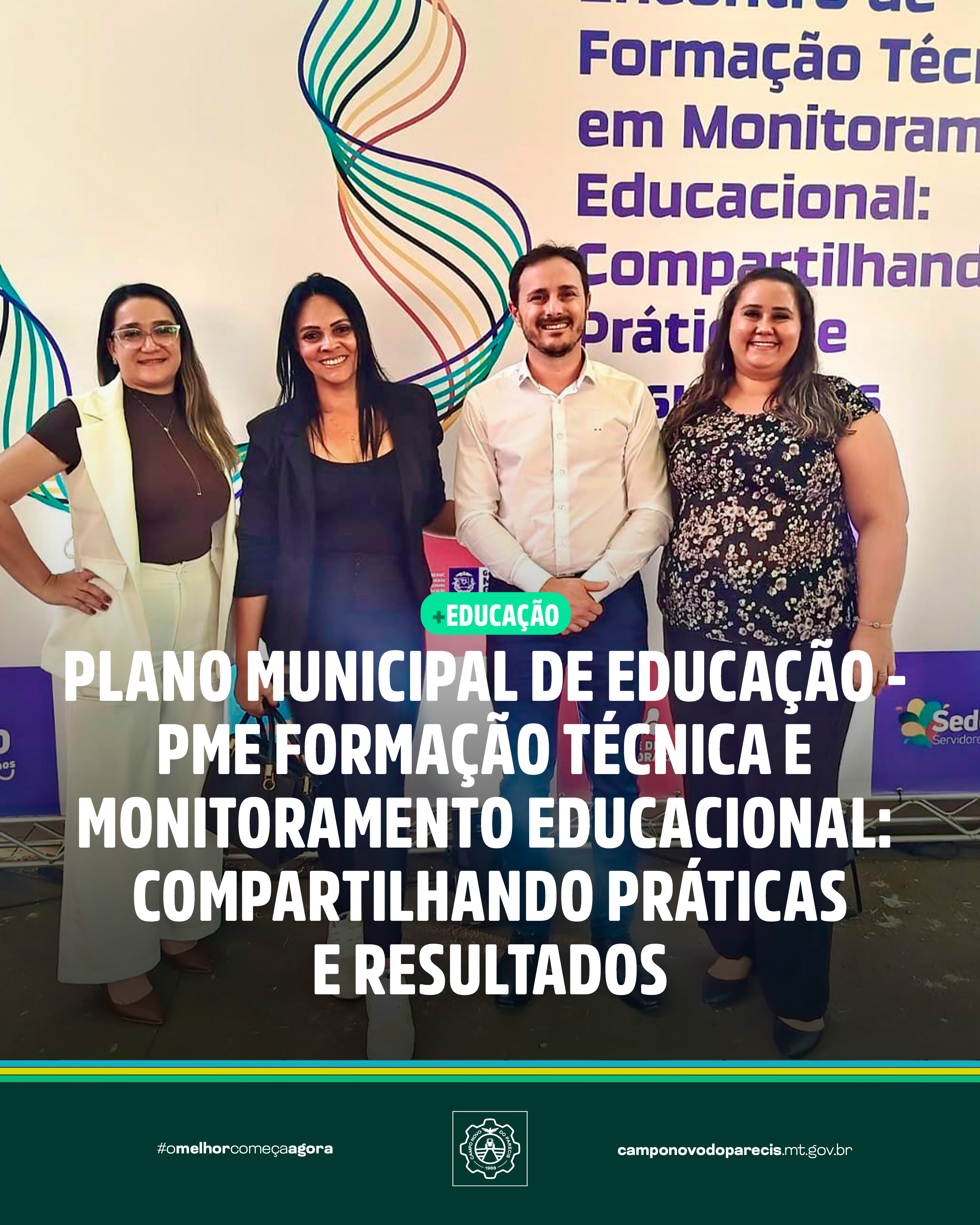 A Prefeitura de Campo Novo do Parecis, por meio da Secretaria Municipal de Educação, reafirma seu compromisso com uma gestão educacional planejada, participativa e comprometida com o desenvolvimento humano e social de toda a população.