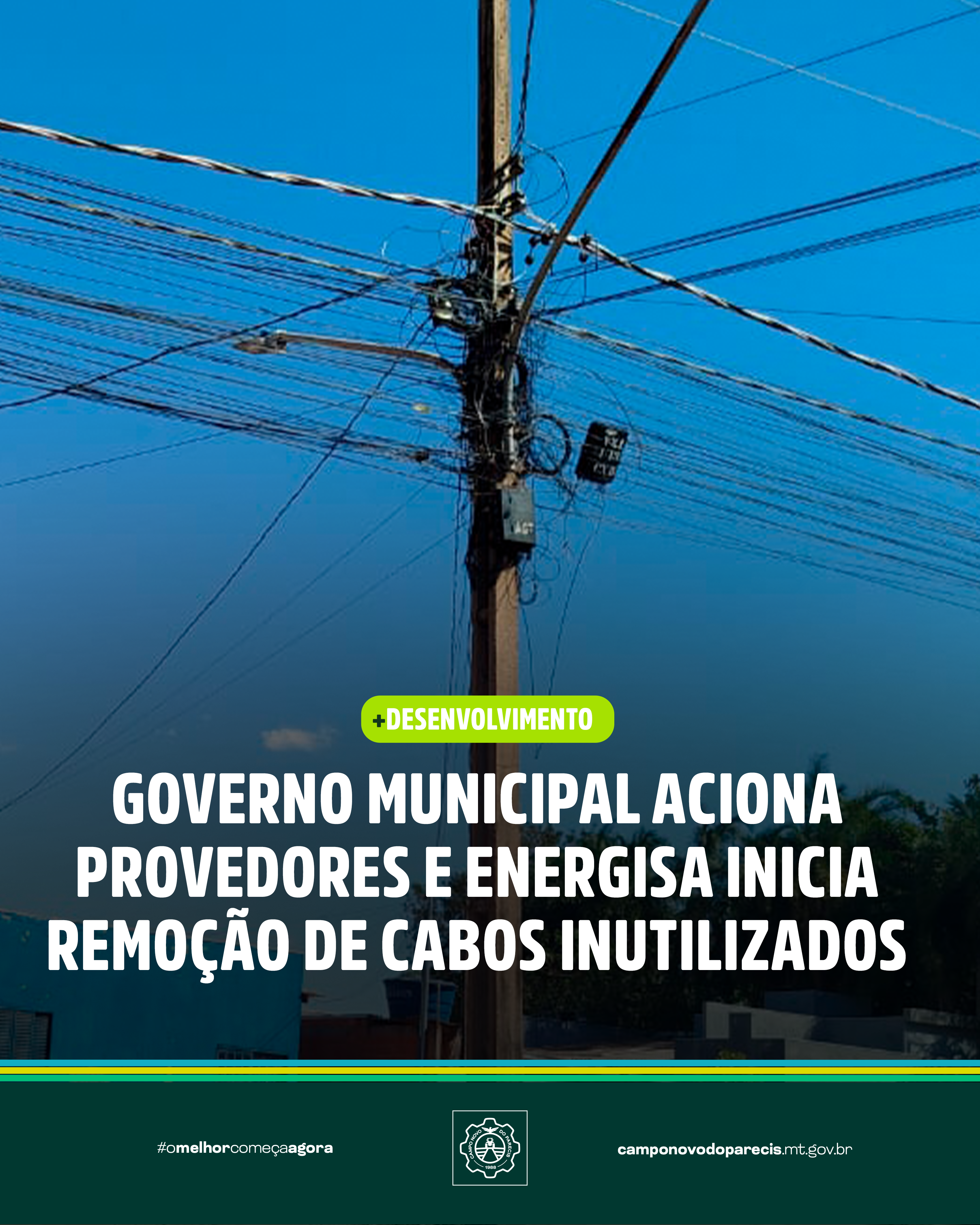 Com o objetivo de promover mais segurança, organização urbana e qualidade visual nas vias públicas, o Governo Municipal de Campo Novo do Parecis iniciou uma força-tarefa para a remoção de cabos de fibra óptica inutilizados nos postes da cidade.