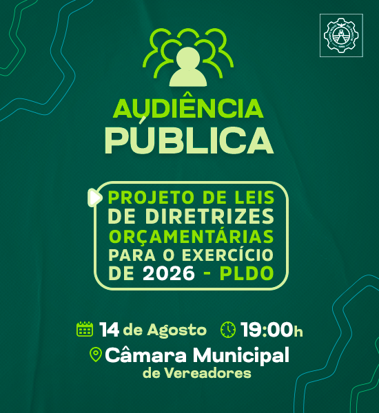 A Prefeitura de Campo Novo do Parecis convida toda a população para participar da Audiência Pública de apresentação do Projeto de Leis de Diretrizes Orçamentárias (PLDO) para o exercício de 2026. O encontro será realizado no dia 14 de agosto, às 19h, na Câmara Municipal de Vereadores.