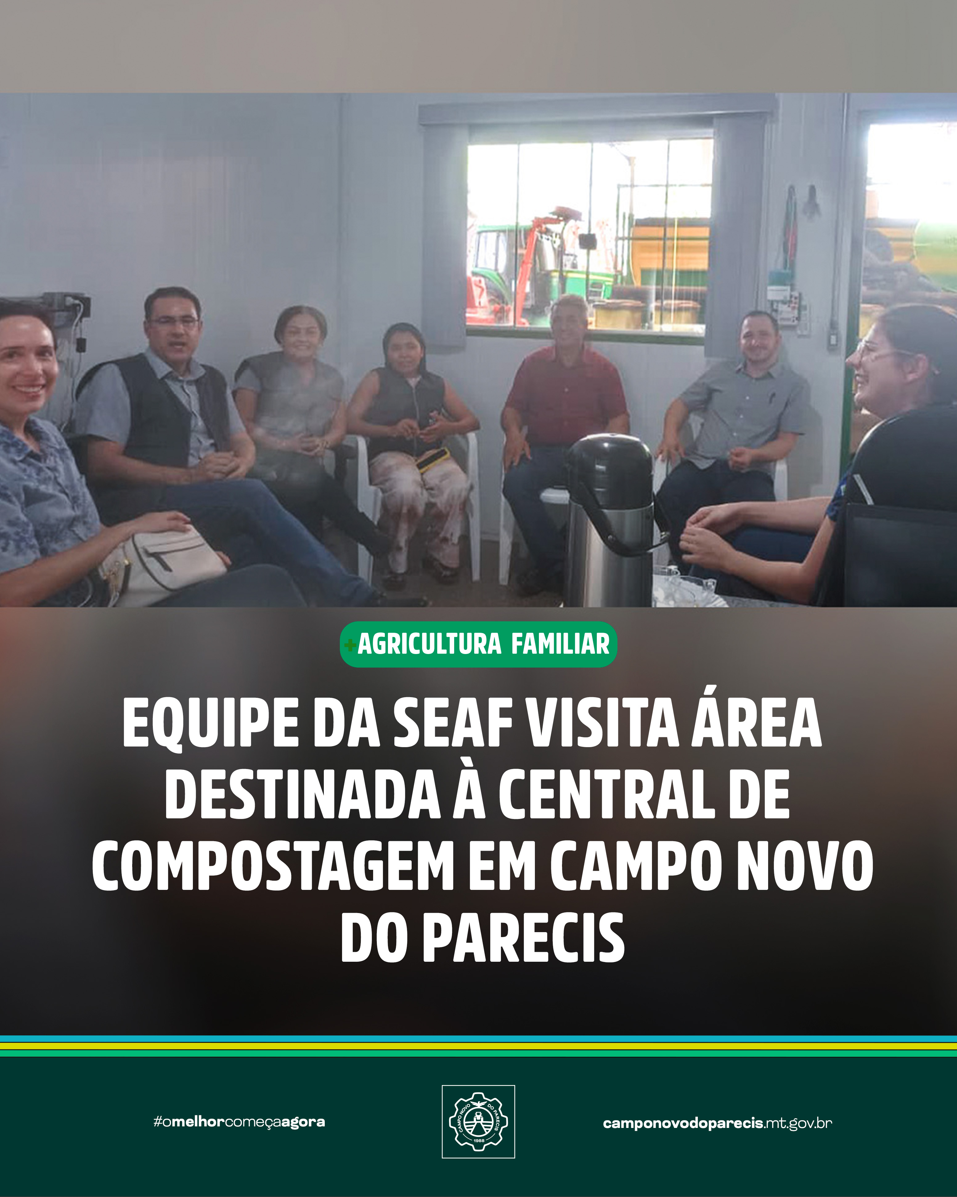 O Governo Municipal de Campo Novo do Parecis recebeu nesta semana a equipe da Secretaria de Estado de Agricultura Familiar (SEAF) para uma visita técnica na área onde será implantada a Central de Compostagem, importante investimento para o fortalecimento das práticas sustentáveis no município.