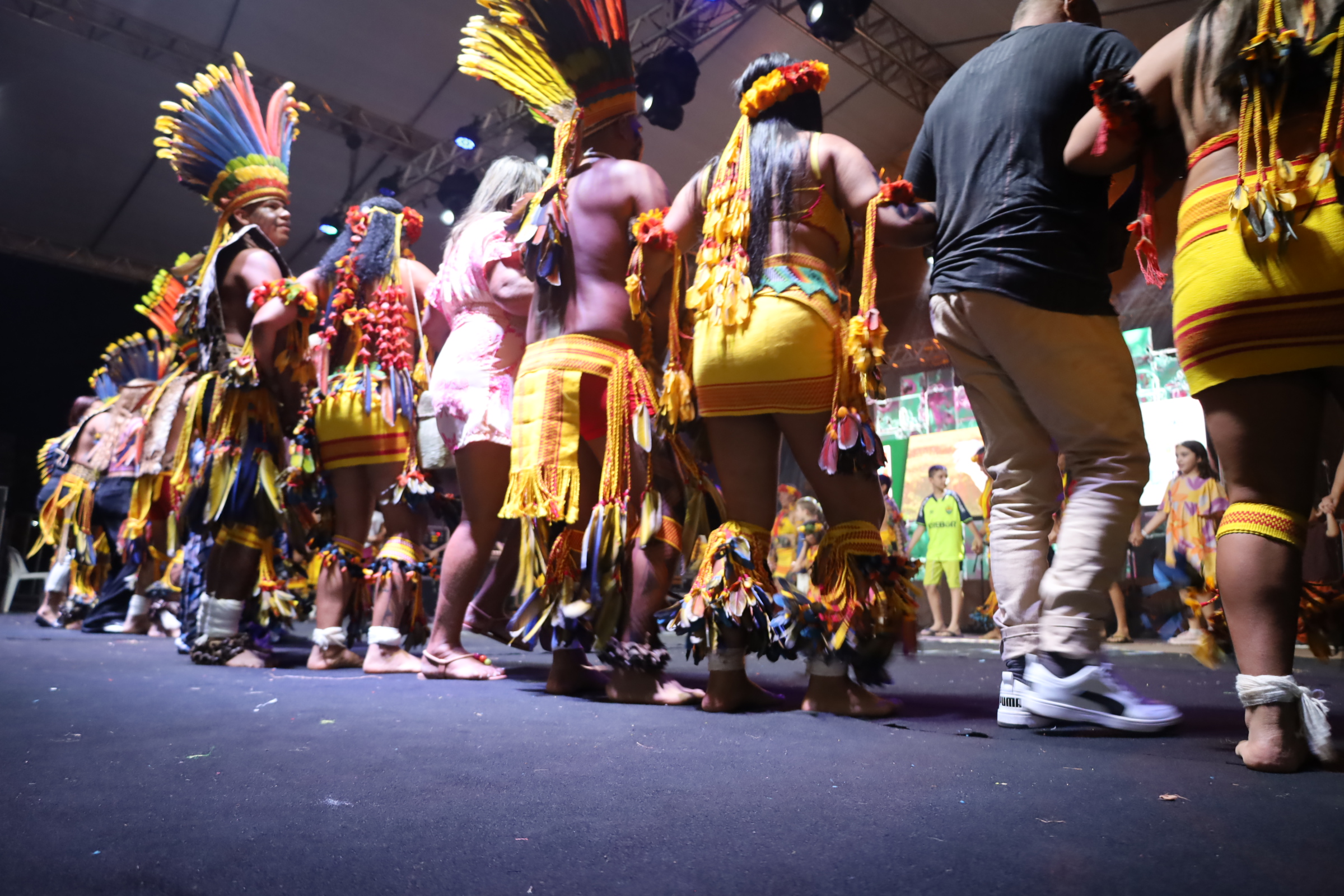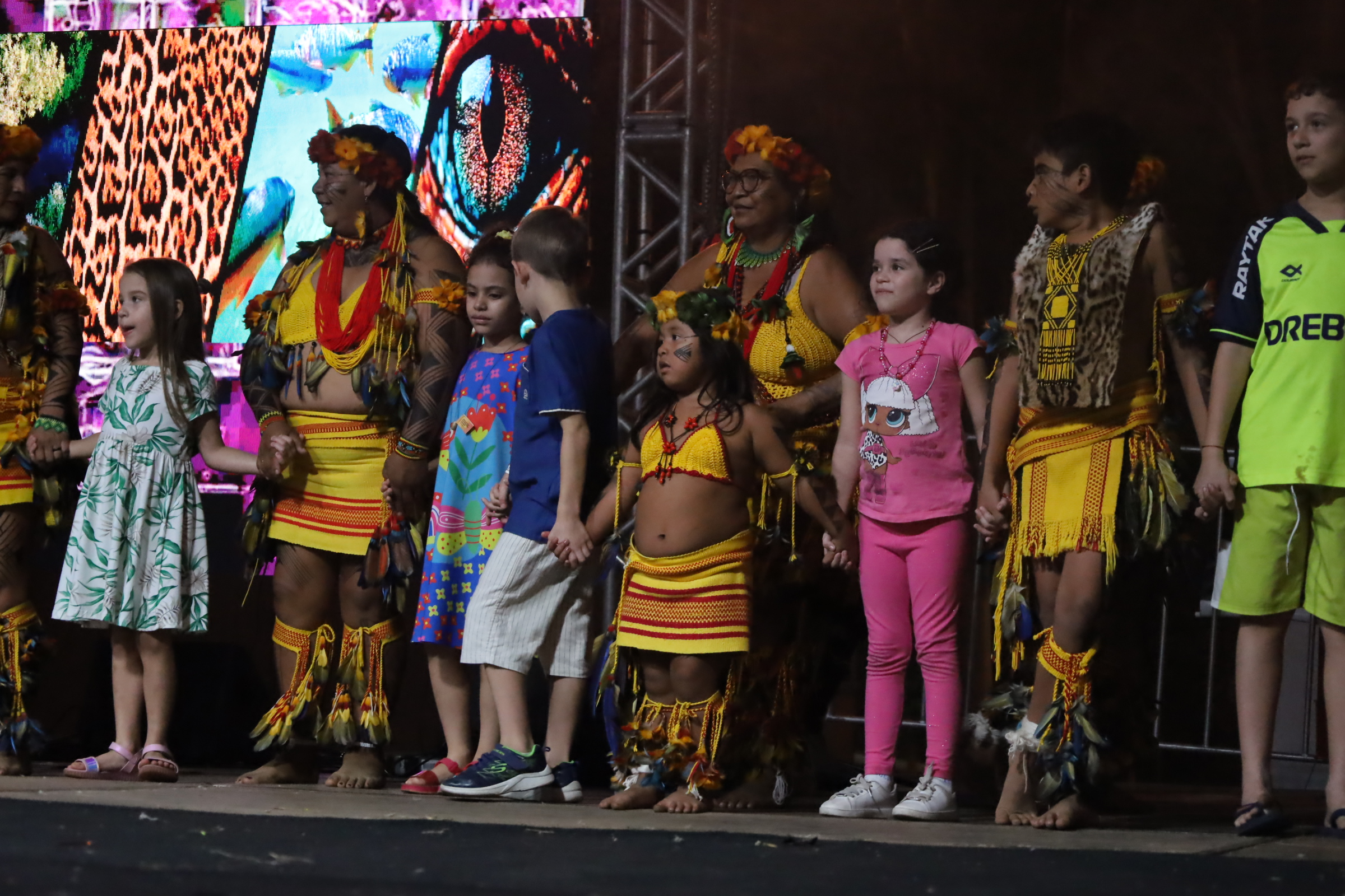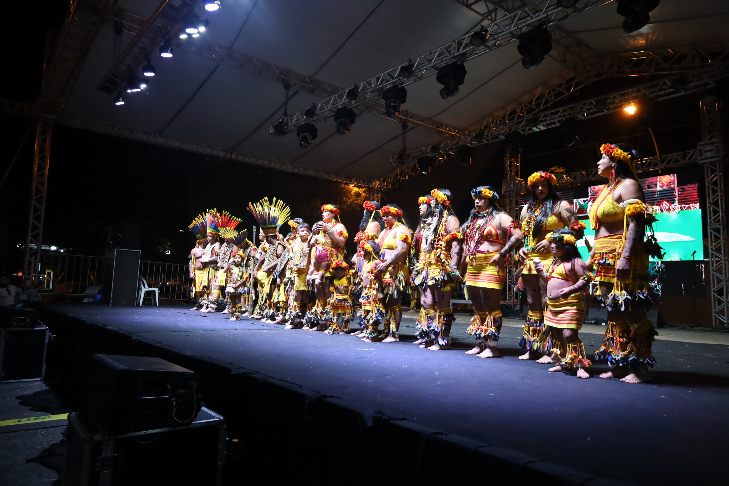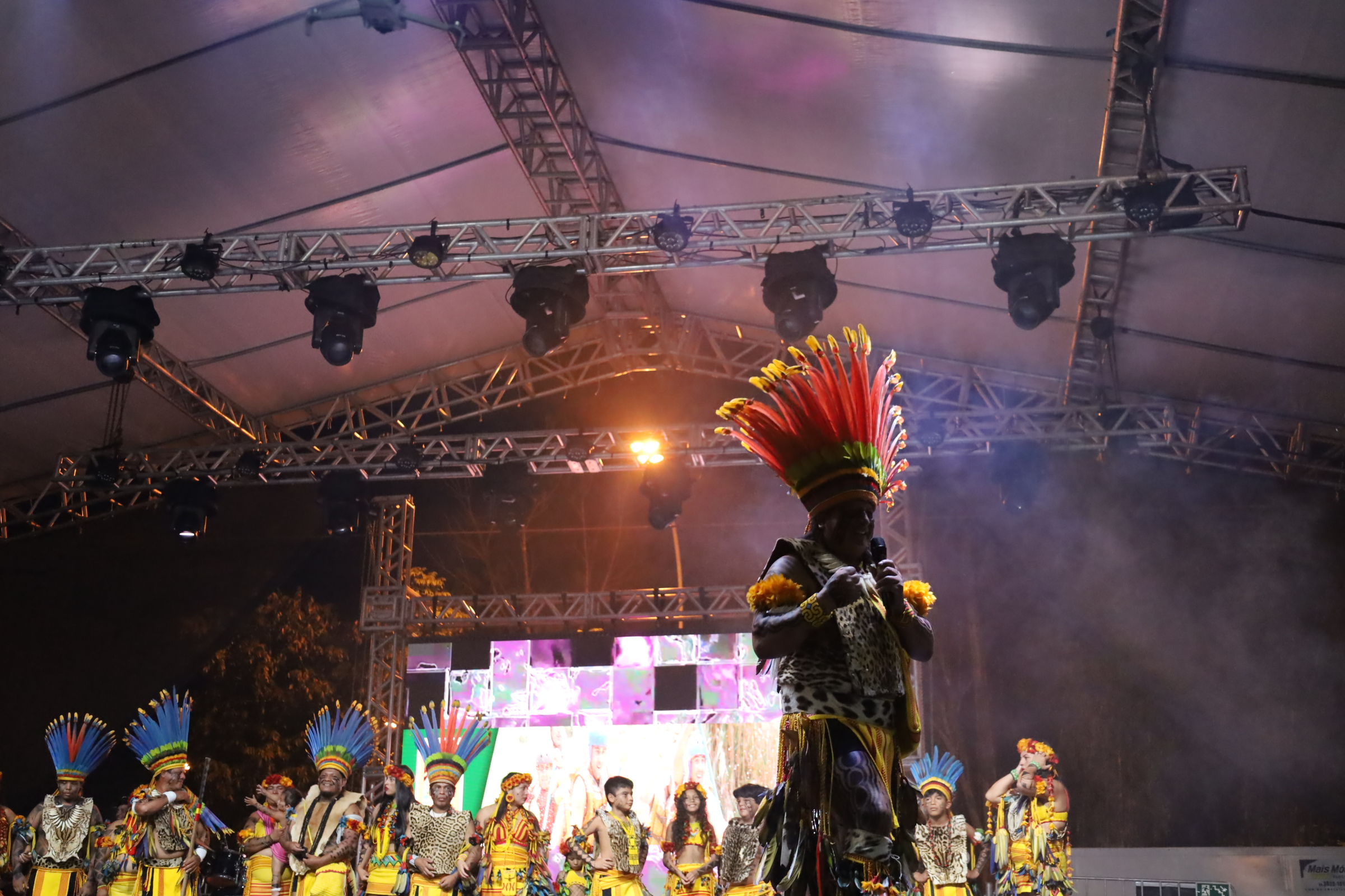 Com trajes tradicionais coloridos e adereços vibrantes, os indígenas apresentaram coreografias que transcendiam o palco, envolvendo o público em uma atmosfera de alegria e união. Os cantos em idiomas nativos criaram uma sinfonia única que emocionou a todos.