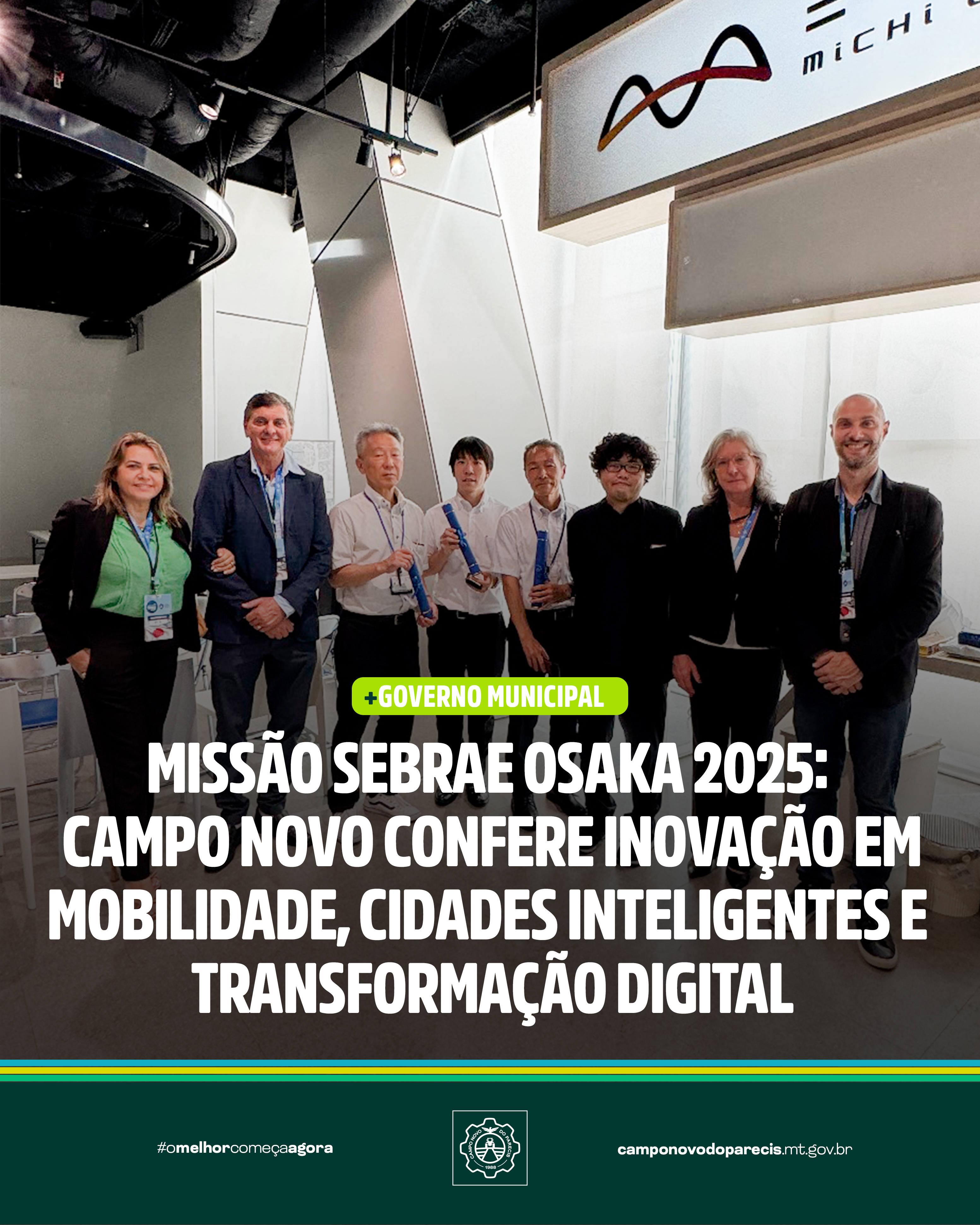 O Governo Municipal de Campo Novo do Parecis participa da Missão Sebrae Osaka 2025, que leva uma comitiva brasileira ao Japão para conhecer inovações em mobilidade, cidades inteligentes e transformação digital.