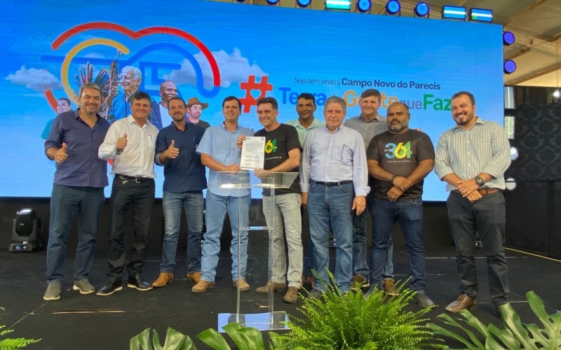 Em destaque na solenidade de abertura da 14ª edição da feira Parecis SuperAgro, esteve a assinatura da Ordem de Serviço para o início da pavimentação da Linha Santa Maria. O trecho de 45,79km de extensão liga importantes propriedades ao município, sendo rota de escoamento da produção agrícola entre as rodovias BR 364 e MT 488.