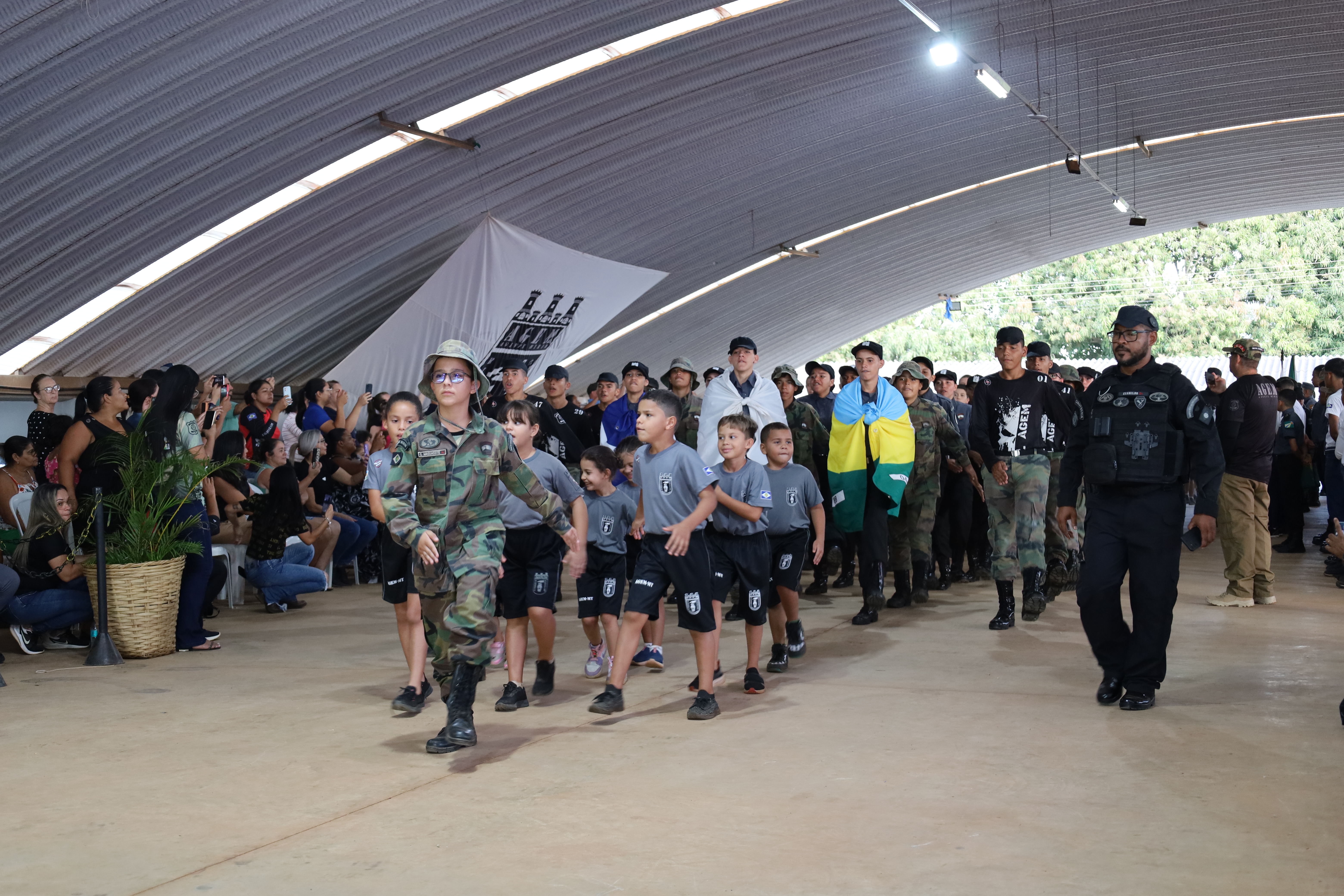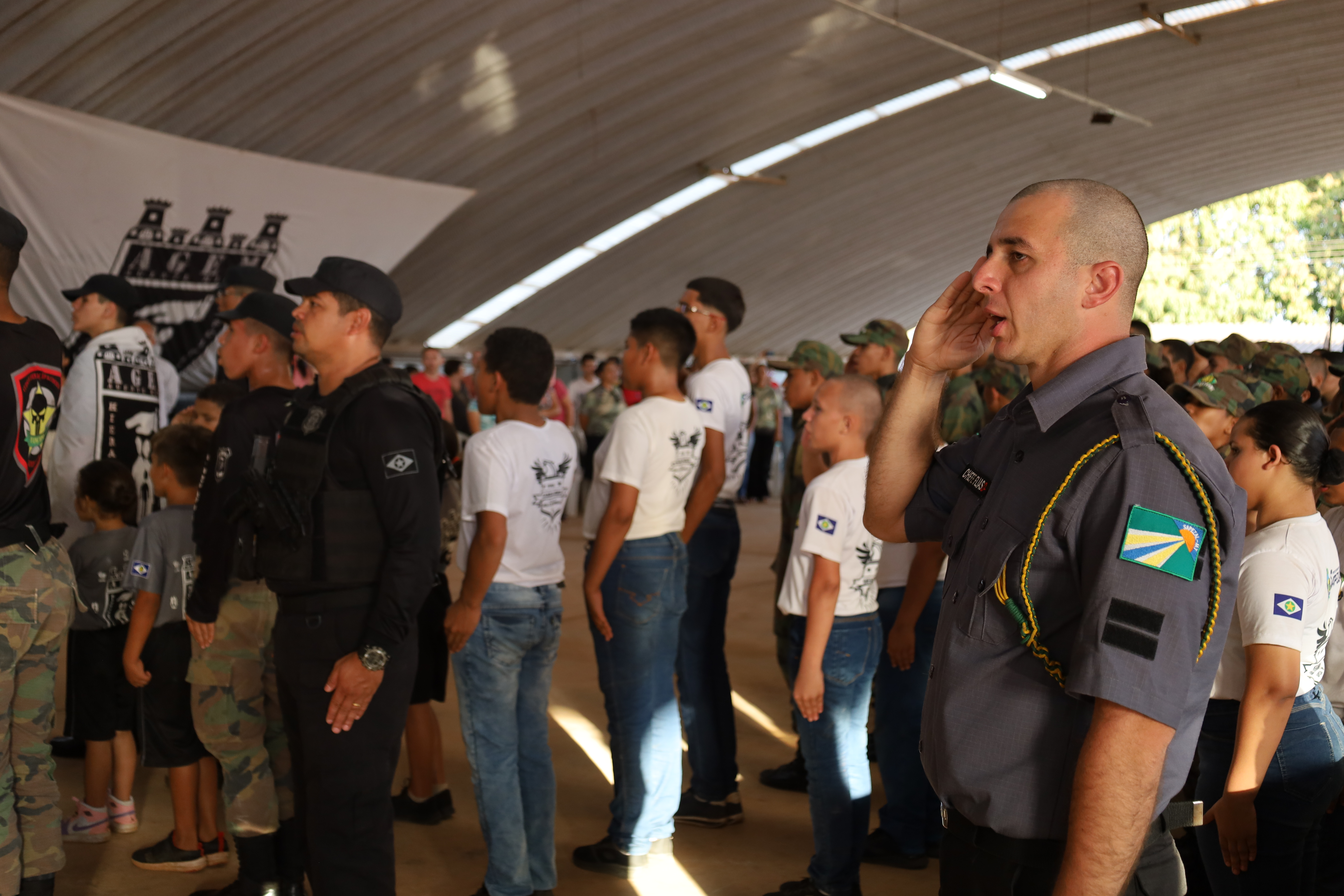 Os Agentes Mirim de todas as regiões também fizeram uma Marcha Contra as Drogas no início da manhã de sábado pelas ruas de Campo Novo do Parecis, parabenizando a cidade pelos seus 36 anos.