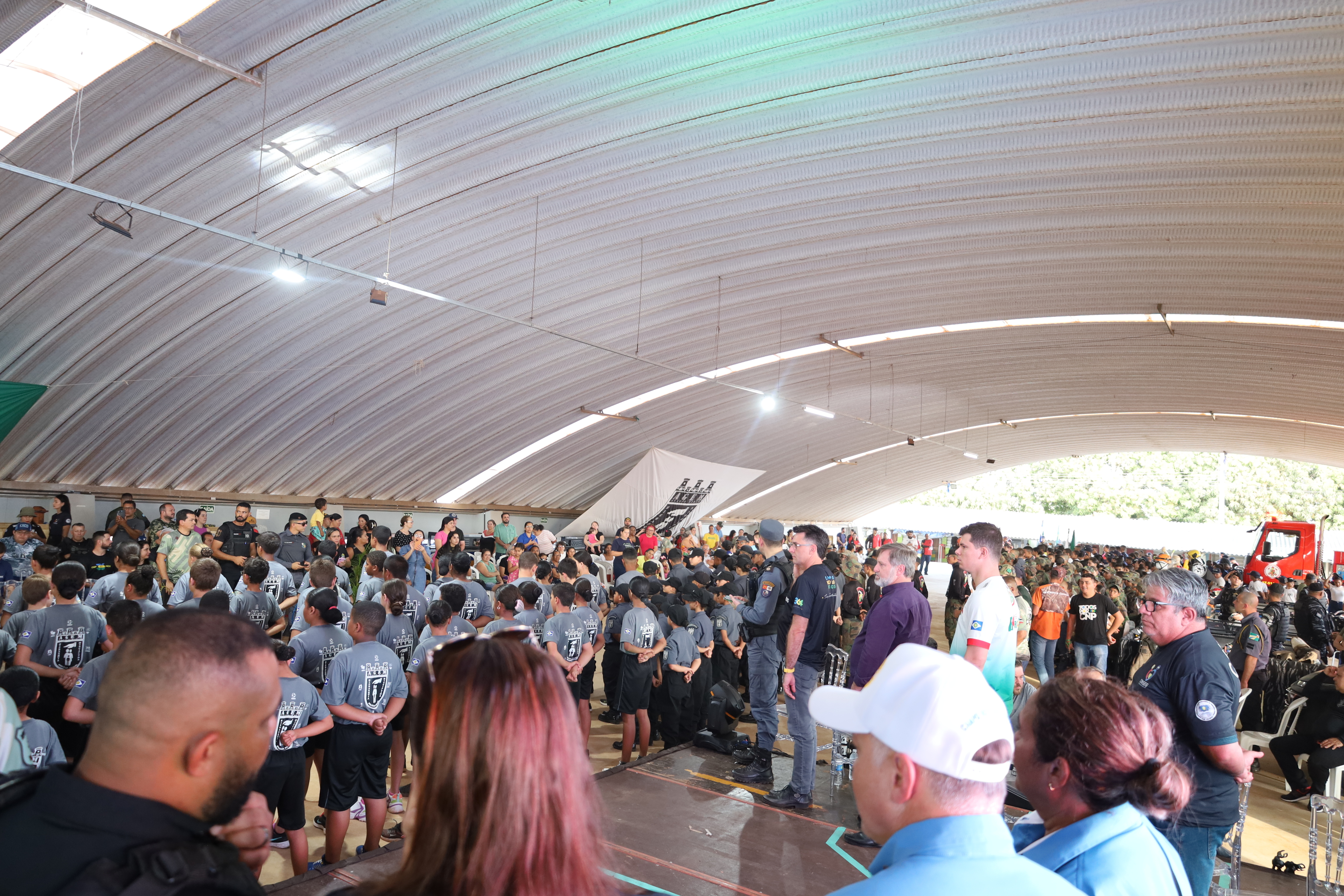 Mais de 600 crianças estiveram presentes em Campo Novo do Parecis neste último final de semana. A Prefeitura, o Conselho Comunitário de Segurança (CONSEG) e o Projeto Agente Mirim (AGEM) realizaram com grande sucesso o 2º Workshop de Segurança Pública, que teve como lema central a "Integração e Cooperação entre os Municípios para a Segurança Pública". O evento contou com a presença dos prefeitos de Campo Novo do Parecis, Rafael Machado, de Mirassol d´Oeste, Héctor Alvares Bezerra, de Sapezal, Sr. Valcir Casagrande, representantes dos projetos mirins (PM Júnior, Bombeiros do futuro e Agente Mirim) de diversos municípios e representantes das forças da segurança pública.