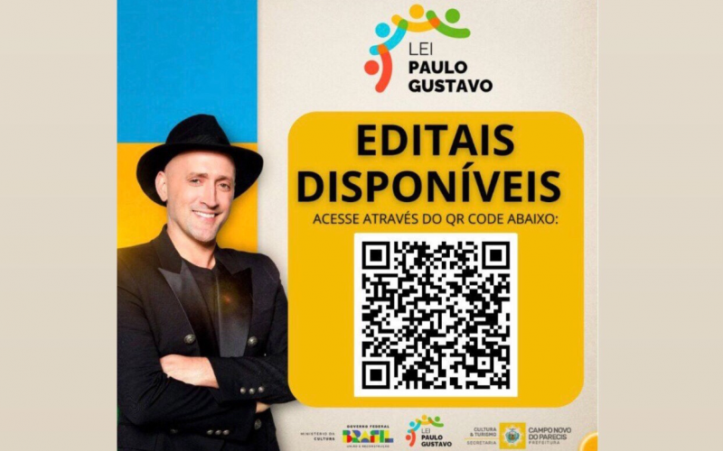 A Prefeitura de Campo Novo do Parecis, por meio da Secretaria de Cultura e Turismo torna pública a seleção de projetos a ser executado com recursos da Lei Paulo Gustavo, conforme estipulado no edital de chamada pública para artistas e fazedores de cultura.