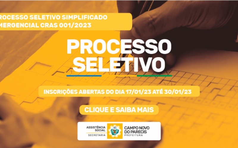 A Prefeitura Municipal de Campo Novo do Parecis através da Secretaria Municipal de Assistência Social divulga as informações sobre o Processo Seletivo Simplificado Emergencial CRAS 001/2023