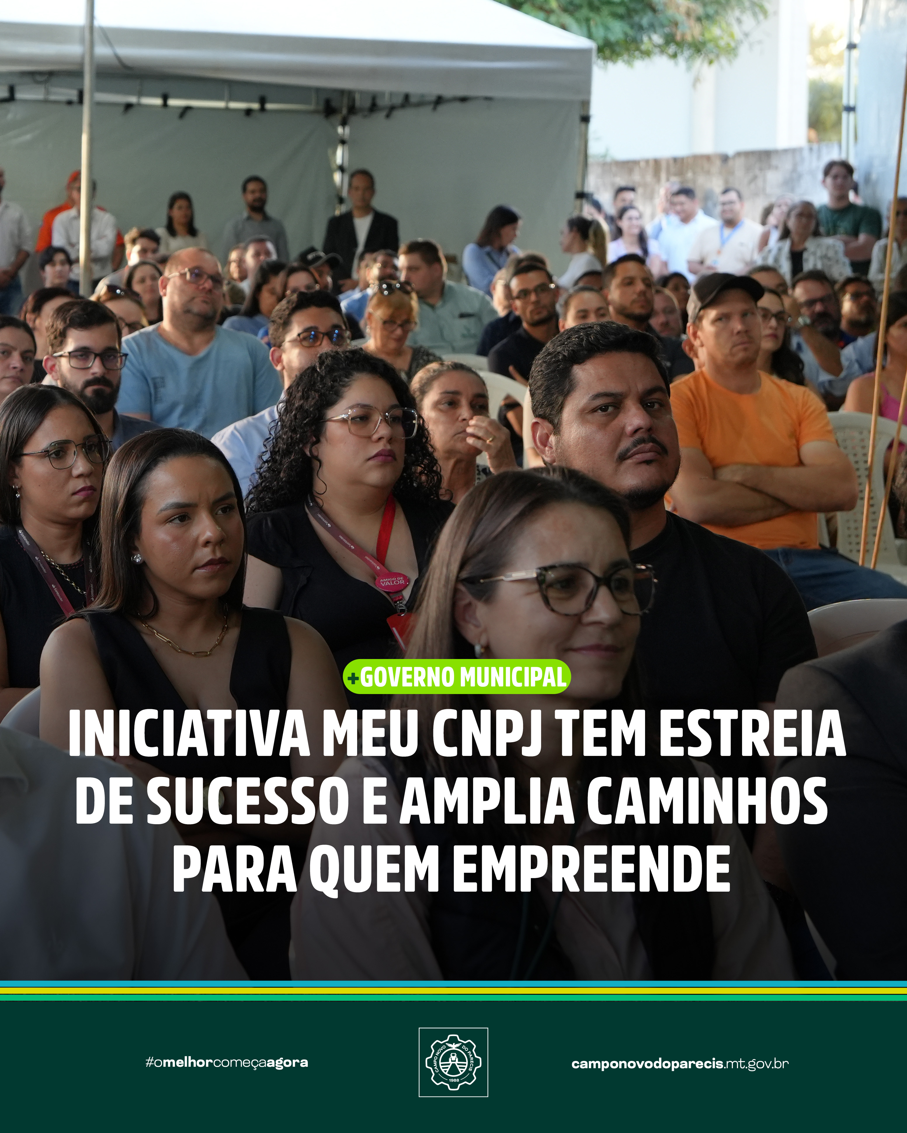 Com o slogan “Sua empresa cresce, nossa cidade melhora”, o Meu CNPJ nasce com o objetivo de oferecer apoio técnico, orientações, acesso a crédito, regularização e formalização de negócios, de forma gratuita e integrada. A proposta é facilitar o caminho do empreendedor e impulsionar a economia camponovense por meio da valorização de quem gera emprego, renda e desenvolvimento.