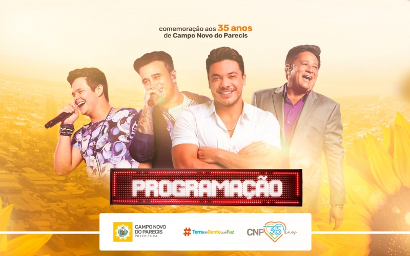 A prefeitura Municipal de Campo Novo do Parecis divulga a programação do 35° aniversário da cidade.