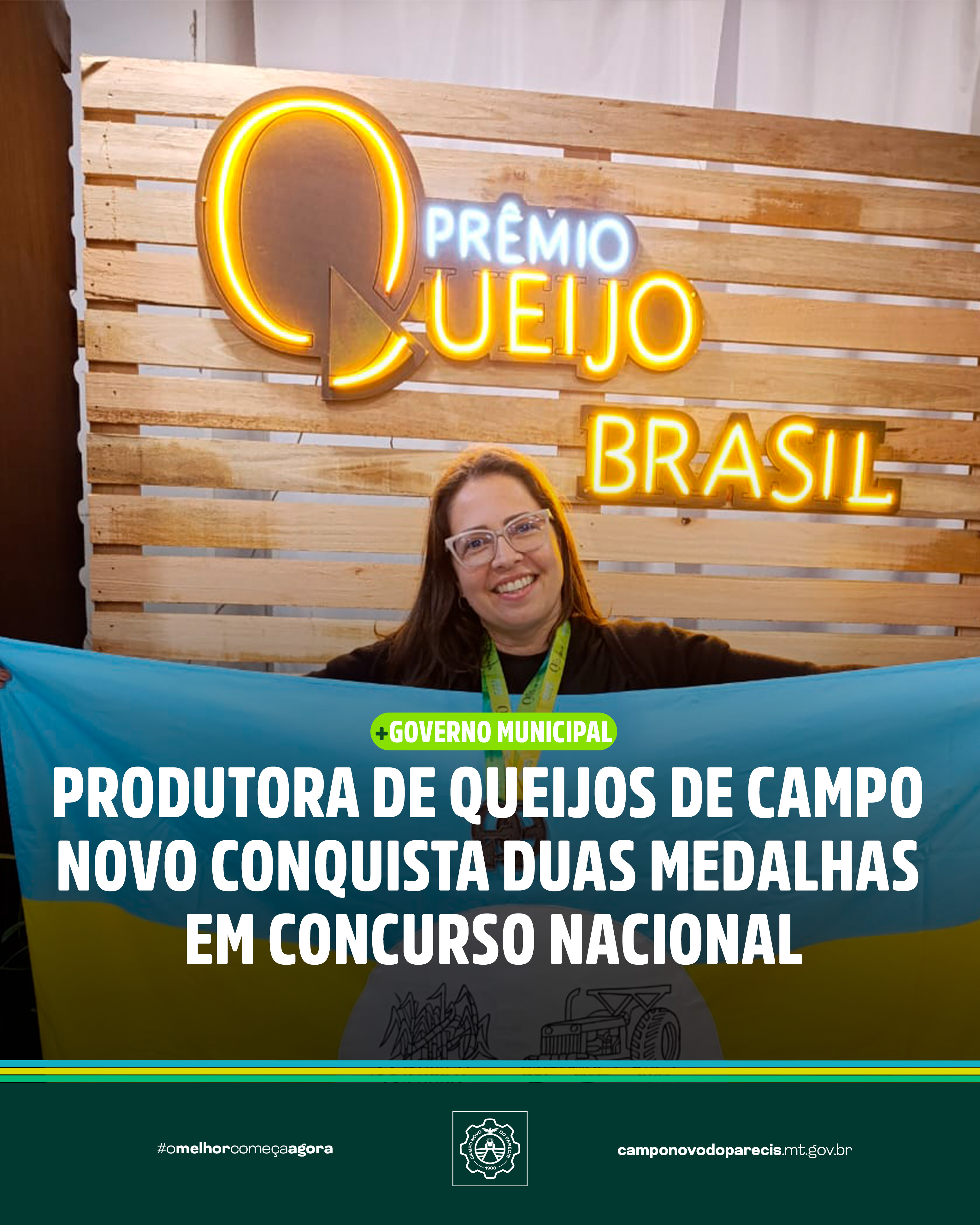 A Prefeitura de Campo Novo do Parecis parabeniza a Queijaria Monte Carmelo por levar o nome da nossa cidade para o cenário nacional, mostrando que o sabor da nossa terra tem qualidade, tradição e reconhecimento!
