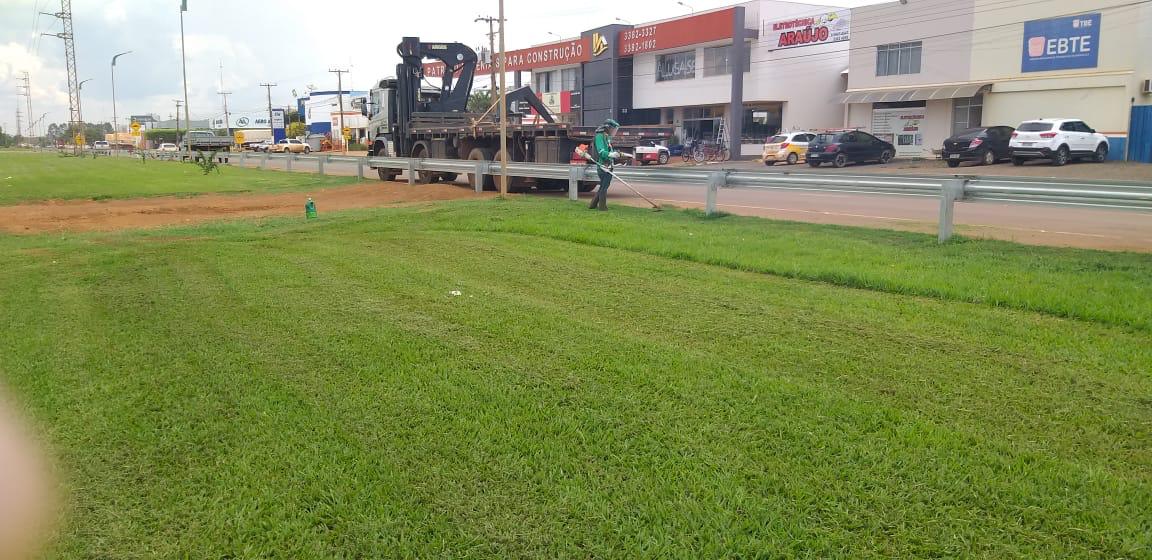 Outro movimento que está sendo realizado é o corte de grama em todos os canteiros centrais e espaços públicos, como, escolas, hospitais, postos de saúde entre outros. Uma das grandes dificuldades nos trabalhos é devido a algumas espécies de árvores não permitirem a modelagem, o que na qual pode parecer que foi feita poda drástica.