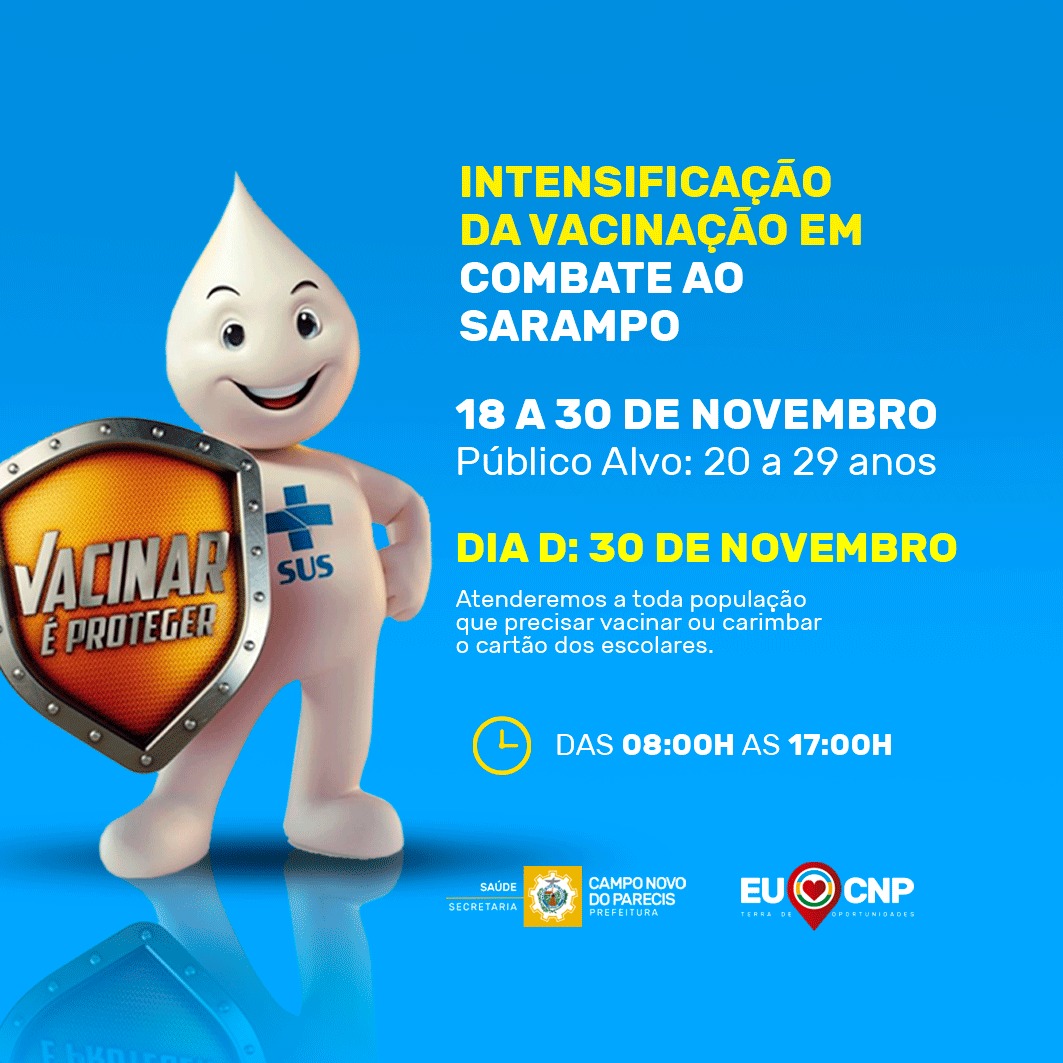 A vacina é destinada a todos, e a intensificação dos adultos de 20 a 29 anos de idade, e o dia D será 30/11, das 08h às 17h.