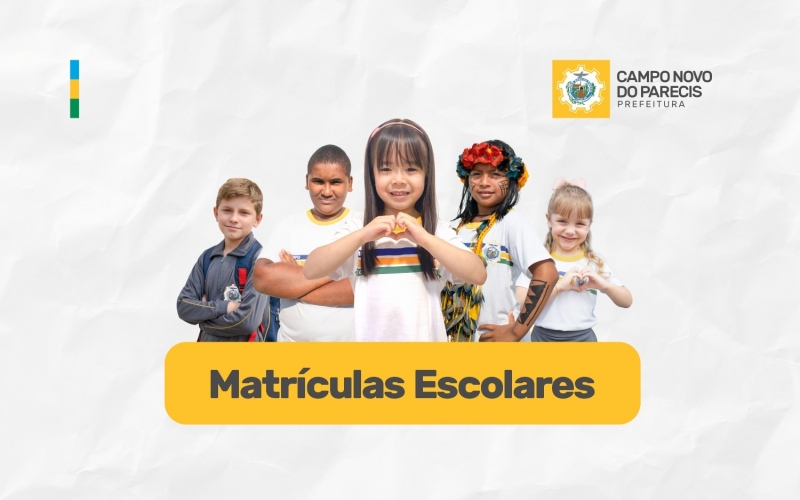 A Prefeitura Municipal de Campo Novo do Parecis através da Secretaria Municipal de Educação informa para todos os pais e responsáveis que as novas matrículas para a rede de Ensino Municipal estarão sendo realizadas nos dias 26 e 27 de janeiro no horário das 07h às 11h e das 13h às 17h nas Escolas da rede Municipais.